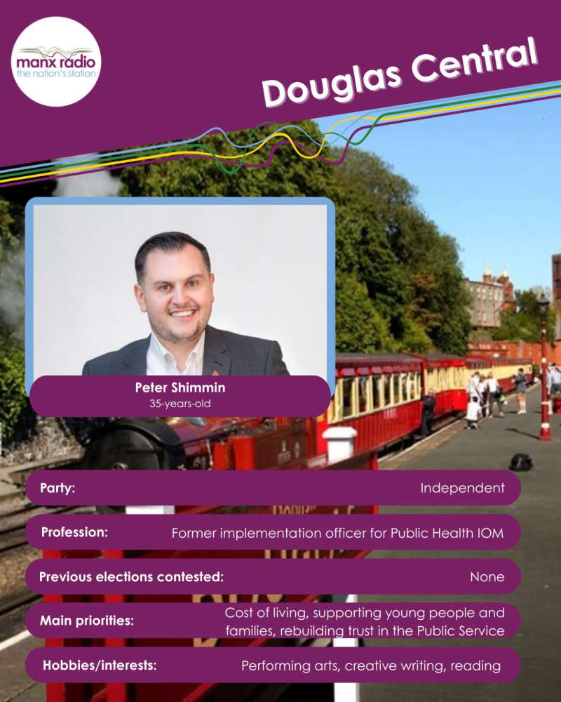 This is Peter's first time standing in a general election, although his dad John Shimmin served as the area's MHK for 20 years.